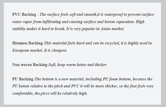 Back Material : Bitumen / PVC with fiber glass